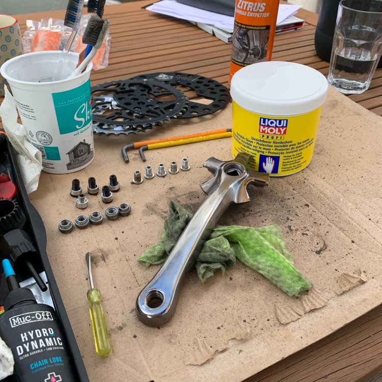 Für Bastian machte ich eine Liste mit Vorschlägen, welche Teile ich neu kaufen würde. Die Liste sprachen wir durch und dann konnte es los gehen. Bastian wollte nicht viel Geld ausgeben, was absolut OK ist. Also suchten wir gute aber günstige Teile aus, die das Rad wieder zum Rollen bringen sollten.
