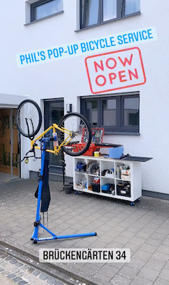Meist schraube ich an meinen eigenen Rädern und denen meiner Familie. Das ist auch heute immer noch so. Irgendwann kamen die ersten Freunde und Nachbarn vorbei und haben gefragt, ob ich mal nach deren Rädern schauen kann. Und so hat Phil’s Pop-Up Bicycle Service begonnen.